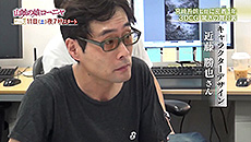 Gorô Miyazaki fixe un écran avec attention. Ca fait maintenant 6 ans qu'il s'intéresse au roman original Ronya, fille de brigand, et 2 ans qu'il travaille avec une nouvelle équipe sur les images numériques de la série. Il est satisfait.