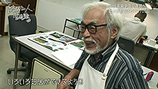 Qu’a fait Miyazaki depuis tout ce temps là ? La camera visite son atelier situé à trois minutes à pieds du studio principal.