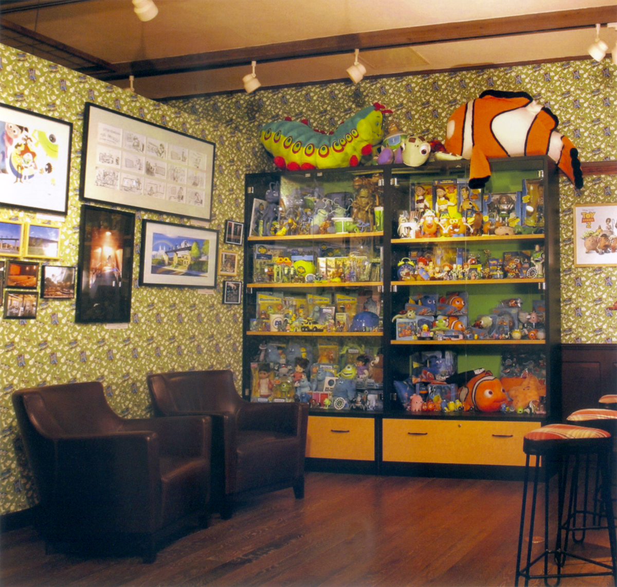 On pouvait aussi voir la reproduction d'un bureau d'artiste et les étagères d'une bibliothèque contenant de nombreux jouets, et même une reproduction du Love Lounge, un salon privatif reliée au bureau de l'animateur Andrew Gordon, comme on peut le voir dans le DVD Rasetâ-san, Arigatô (Merci, Monsieur Lasseter).